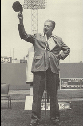 I told him how a cantankerous relationship developed between him and the Boston media, whom he referred to as “the knights of the keyboard.” I told him how this, at times, led to frustration and caused a block of fans to get on Ted, to ride Ted and sometimes Ted responded by doing things that he wished he had not done. The worst of which were throwing a bat up into the air which struck a fan in the first row and once spitting towards booing fans on his way off the field! I told him how this caused him to stop tipping his cap! And how once making that decision he never tipped his cap again until 1991, 31 years after he retired.