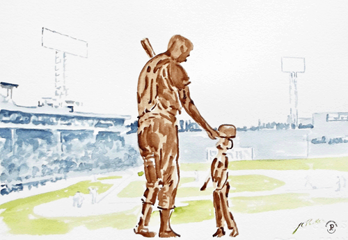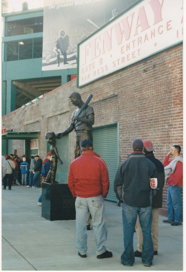 For eight years, Ted has been standing watch over Fenway and when all is said and done, that is as it should be. For through the litany of the games very best who have called Fenway Park home: from Speaker and Ruth, to Grove and Foxx, to Yastrzemski, Fisk and Rice and into today Ted Williams is the once and forever face of the Boston Red Sox. He now stands forevermore with his teammates and his kids, his Jimmy Fund kids! And all due to the vision and generosity of Hank Evanish and the heart, mind and hands of Franc Talarico.