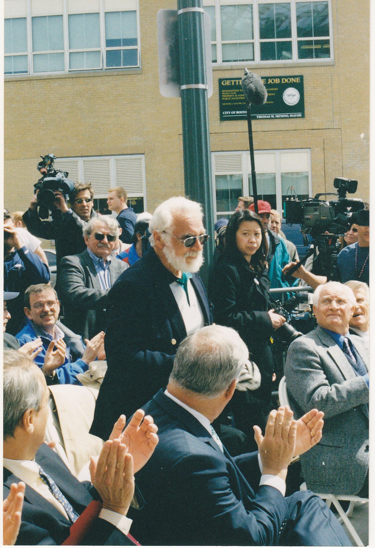 Franc is applauded by from left to right, Larry Luchinno, Mayor Tom Menino, Bobby Doerr and Johnny Pesky.