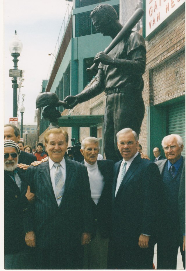 Franc, Larry Luchinno (behind him), Hank, Johnny Pesky, the Mayor and Bobby Doerr, minutes after the statue was unveiled.