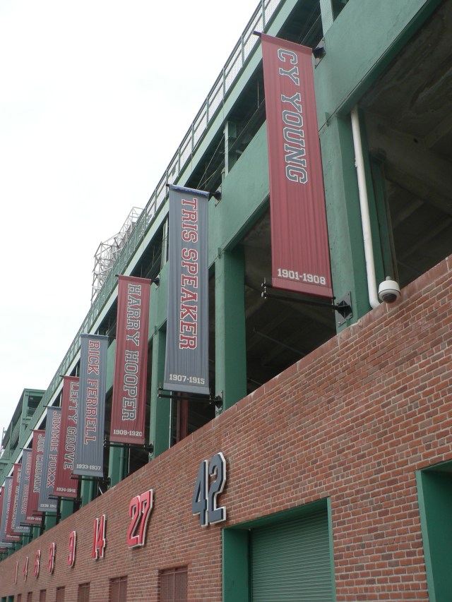 A Hall of Famer who spent 12 of his 17 seasons with the Red Sox, you might wonder why his number is not retired on Fenway’s right field facade. Well, it’s simple, no numbers were worn while he played and the Red Sox did not put numbers on their backs until the 1931 season. However Harry Hooper has his place of honor as his banner flies outside of Fenway Park on Van Ness Street.