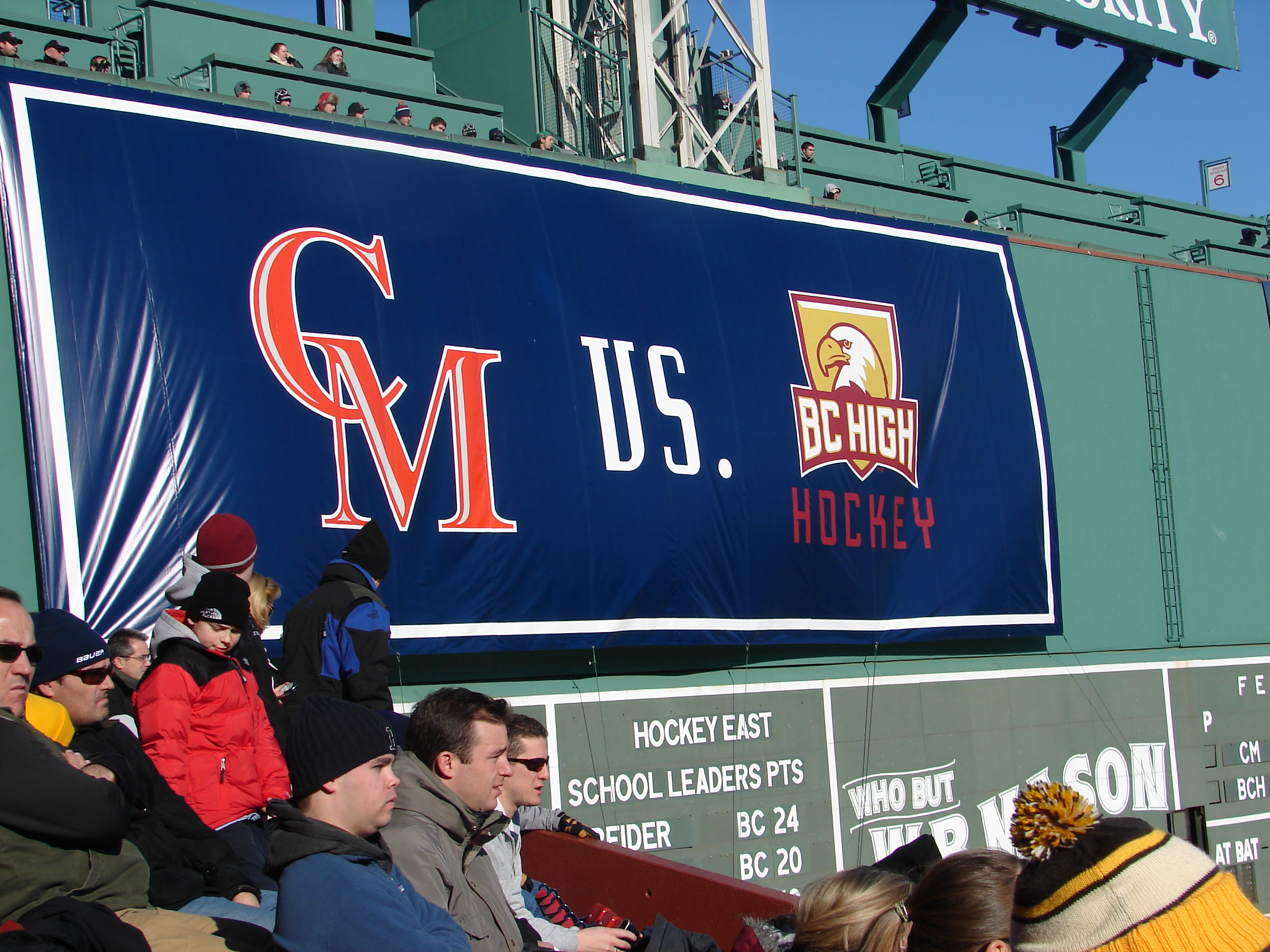 You see 100 years ago when Fenway opened her gates, the very first non Red Sox baseball event held was a high school football game. Now this was not just any high school football game but it was Boston English High against Boston Latin High. That day in November of 1912, those schools were celebrating the 25th year of their rivalry. Thanksgiving Day 2012 Latin and English will play each other for the 125th consecutive year, the longest high school football rivalry in the nation. In the 1912 game, Latin emerged victorious 7-6 and left the field unaware that a century later two other high schools in a whole different sport would play out their passion in the same environs. The CM/BC High hockey rivalry, although not as longstanding, is filled with a heated intensity.