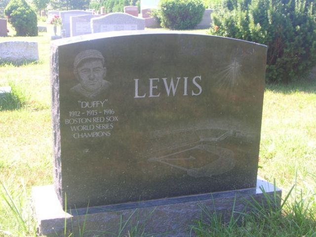 Duffy Lewis spent the later years of his life in Salem New Hampshire, visiting Fenway often. A frequent visitor to the Rockingham Park horse track, he died in 1979, three years after his wife Eleanor. He left no known living relatives and no money and he was buried in an unmarked grave in Holy Cross cemetary in Londonderry New Hampshire.