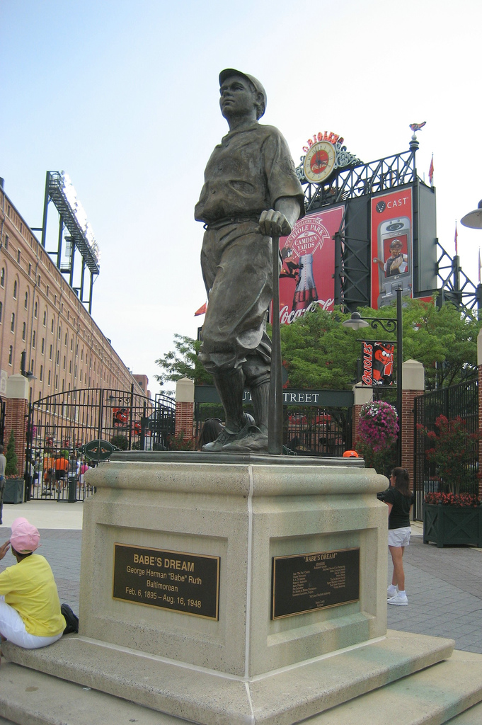 The saloon which Babe’s dad owned once stood on the same ground that today is centerfield of Orioles Park at Camden Yards; which honors Babe’s beginnings with a statue outside.