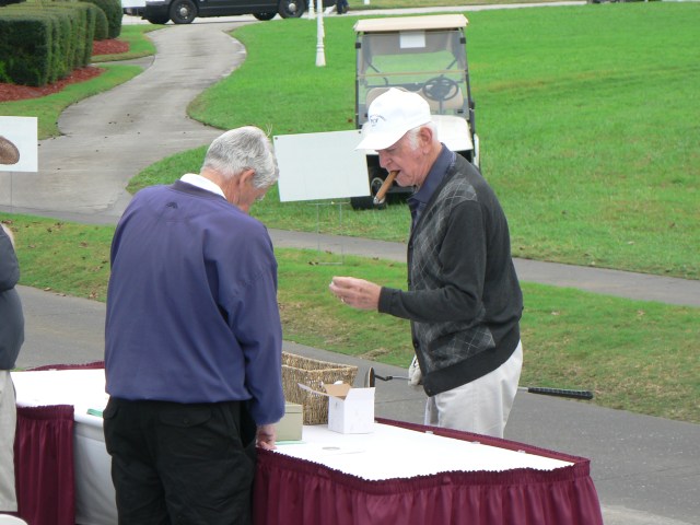 “Jungle Jim” Rivera, 89 years young, selects his ball for the putting contest.