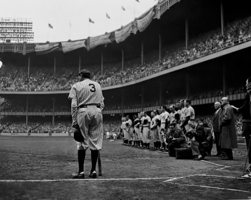 Wearing the number six, he played right field and was inserted in the third spot in the order by manager Casey Stengal. His first at bat was a right-handed one and came against this man,