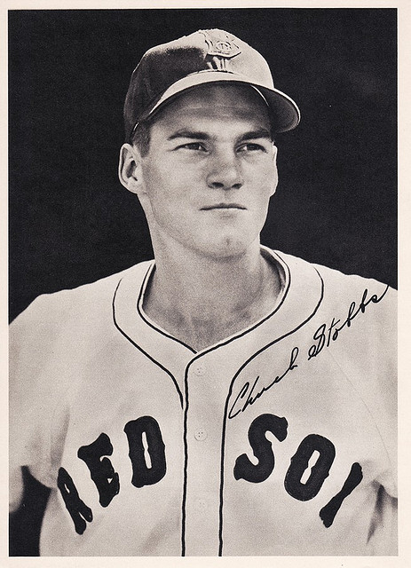 Stobbs had made his debut as a 17-year-old in 1947 and was in the fifth year of a 15 year career which would see him go 107-130 with four teams. On this day the Red Sox lefty was to face Mickey Mantle three times. The first came in the top of the second inning; New York had two runners on and one out when Mick stepped in, Stobbs struck him out. The second time was with Mantle leading off the fifth, he struck him out. Mantle came up again in the sixth inning with two outs and Joe DiMaggio on second and Stobbs got him on strikes for the third time in a row. In the seventh inning, Casey Stengal pinch hit for Mantle with Jackie Jensen who hit a two run homer to give the Yankees the lead.