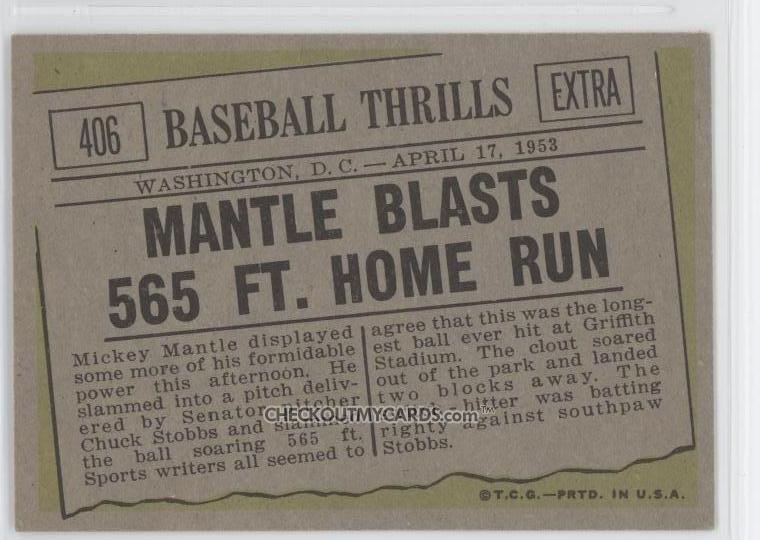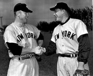 And rookie Mickey Mantle’s day of futility was over. He had batted five times and punched out five times! The 19-year-old Mantle was sent to the minor leagues before the end of the 1951 season only to return in ’52’ wearing the number seven and setting a course that would make him the greatest switch-hitter in baseball history.