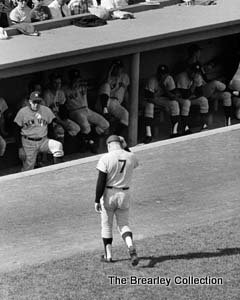 Leading off the game, Mantle went down on strikes and did so again in the third inning. He was scheduled to lead off the top of the sixth but when the Yankees took the field in the fifth Cliff Mapes was in right field.