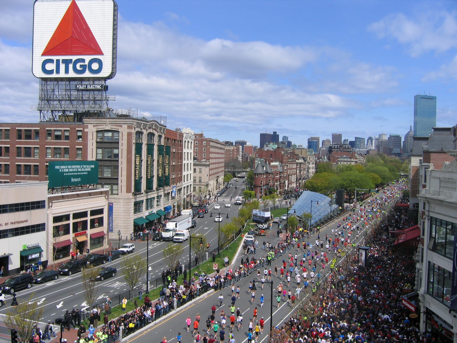 The Boston Marathon started in Hopkinton Massachusetts at noon and ended in Kenmore Square, 26 miles away, hence a marathon.
