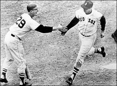 The sky was a gloomy gray that Wednesday afternoon and only 10,454 of the Fenway Faithful were present to bid adieu to “The Kid”. It was the bottom of the eighth inning, the Red Sox were trailing the Baltimore Orioles 4-2 and Eddie Fisher was on the mound. Take a peak. http://www.youtube.com/watch?v=lN0uD8F3-QQ It was a legendary finish to a legendary career and Jim Pagliaroni stood witness to history!