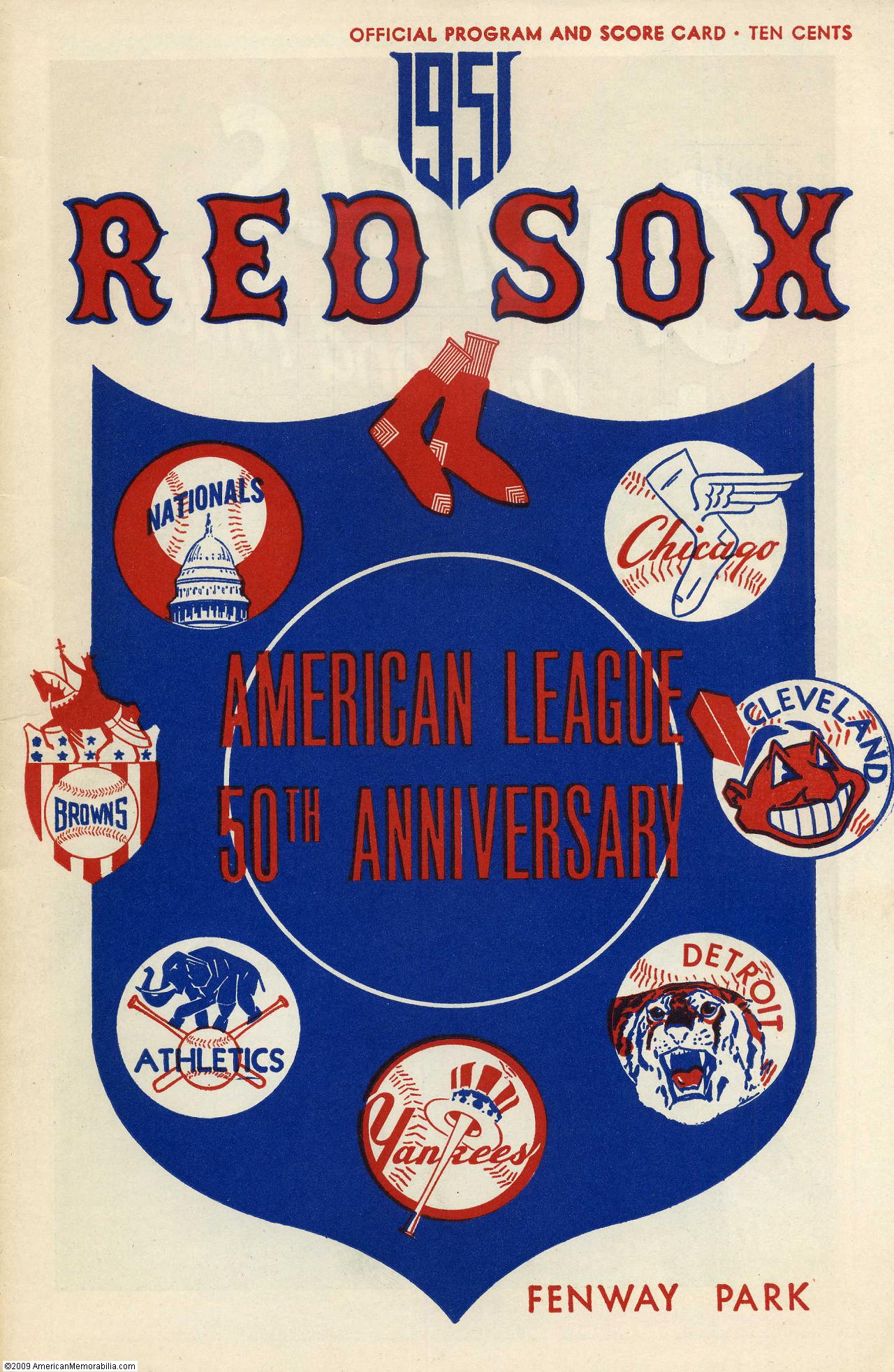 I love this Fenway Park program from 1951 because I love all those logos. The Athletics were still at their first stop and Philadelphia, the Browns were still two years removed from moving from St. Louis to Baltimore and the original Senators (Nationals) still had a decade left in the Nations Capital. These are the original eight teams which formed the American League in 1901.