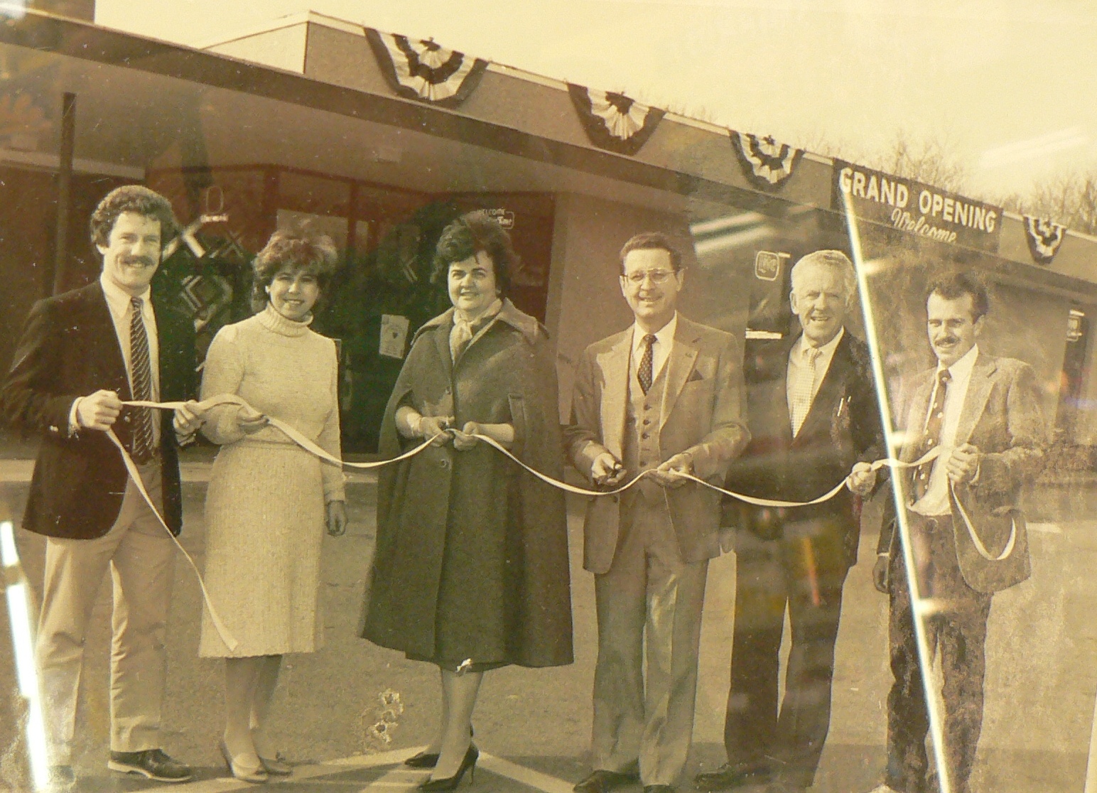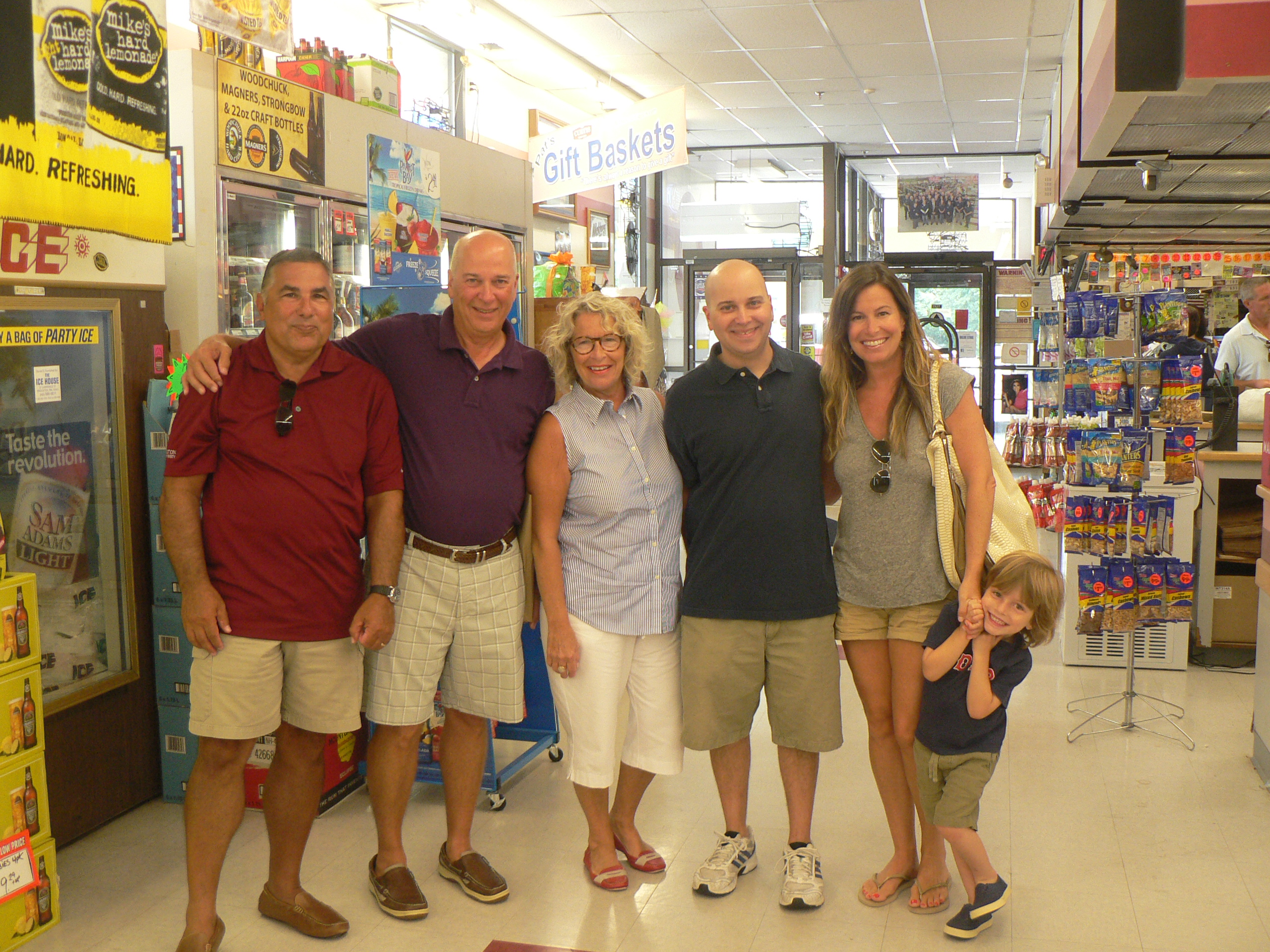 Curtis Liquors Grand Opening circa 1982, left to right, Rick Curtis, Marion Curtis, two town of Weymouth selectpersons, “Dick” Curtis and yours truly.