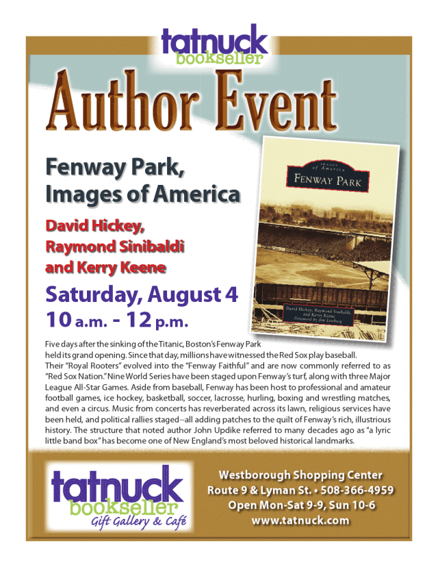 So if you are out in the Westborough way on Saturday morning, or if you know folks who are out that way, stop by or send them a heads up to come out and enjoy morning coffee with us and talk about a couple of New England’s favorite topics, Fenway Park and the Red Sox.