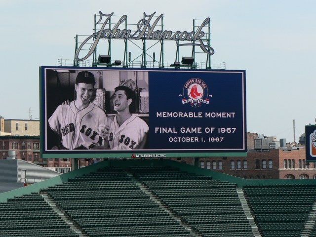 Now I have been fortunate enough to have witnessed many a magical Fenway Park moment. Among them, Tony C’s dramatic comeback on opening day 1969, Fisk waving the ball fair and Yaz saying goodbye during the emotional last weekend of his career. However the magic of that final day of the 1967 season still touches me.