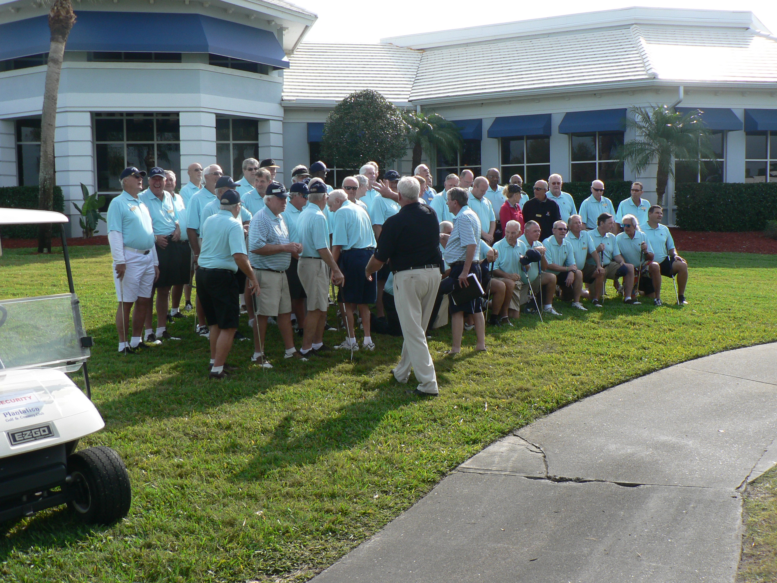Plantation Director of Golf Operations Keith Struble waves the group into position for the annual group photo.